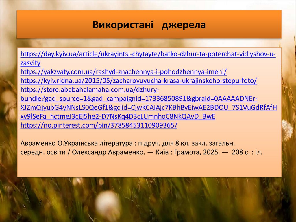 Використані джерелаhttps://day.kyiv.ua/article/ukrayintsi-chytayte/batko-dzhur-ta-poterchat-vidiyshov-uzasvity