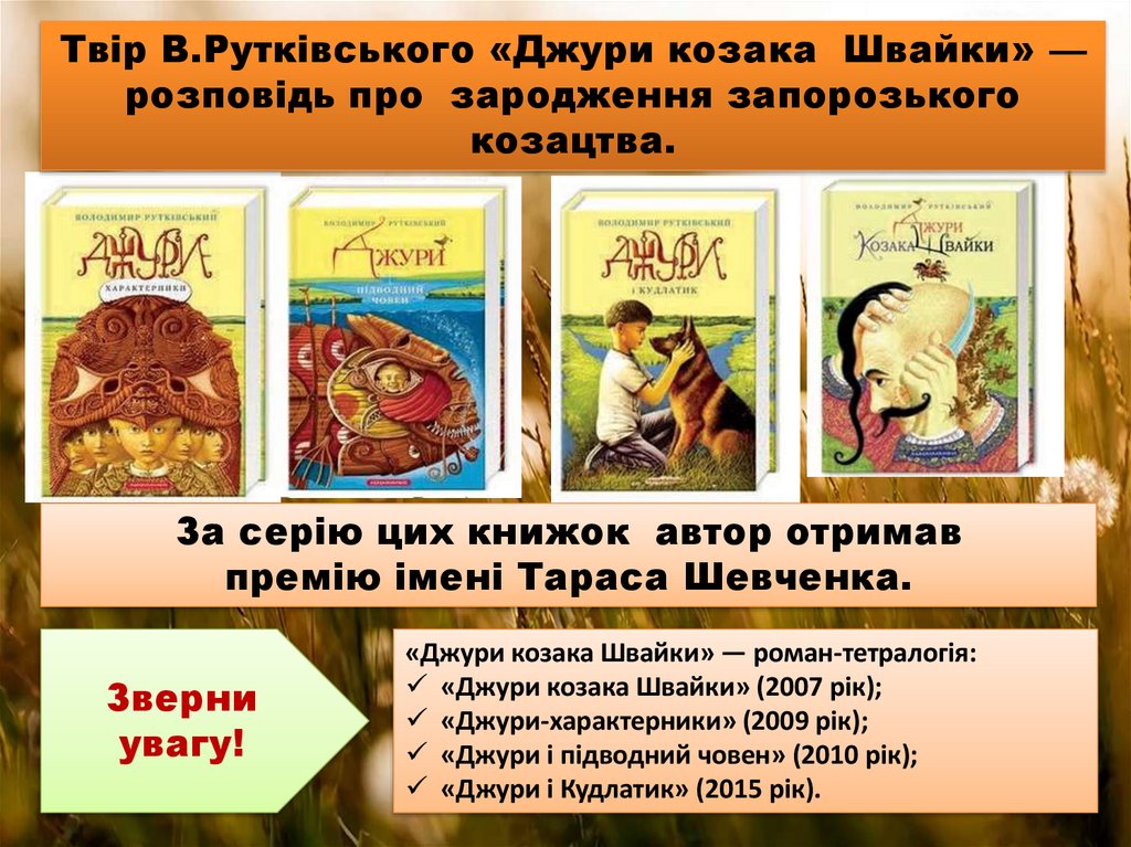 Твір В.Рутківського «Джури козака Швайки» —розповідь про зародження запорозького