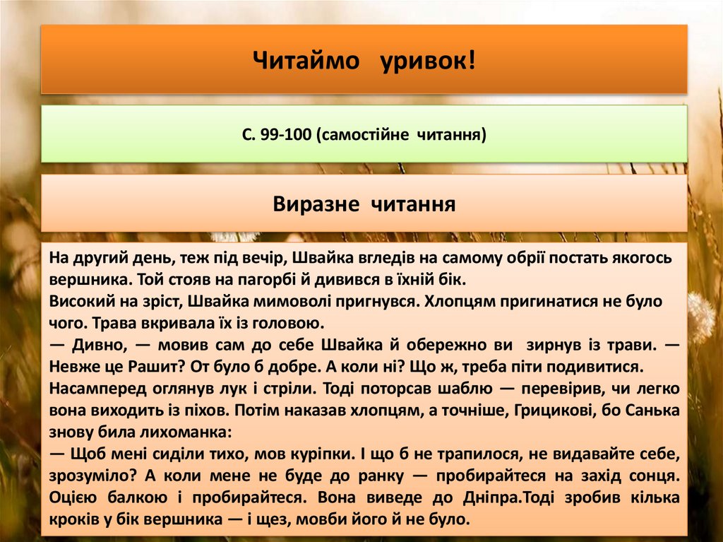 Читаймо уривок!С. 99-100 (самостійне читання)