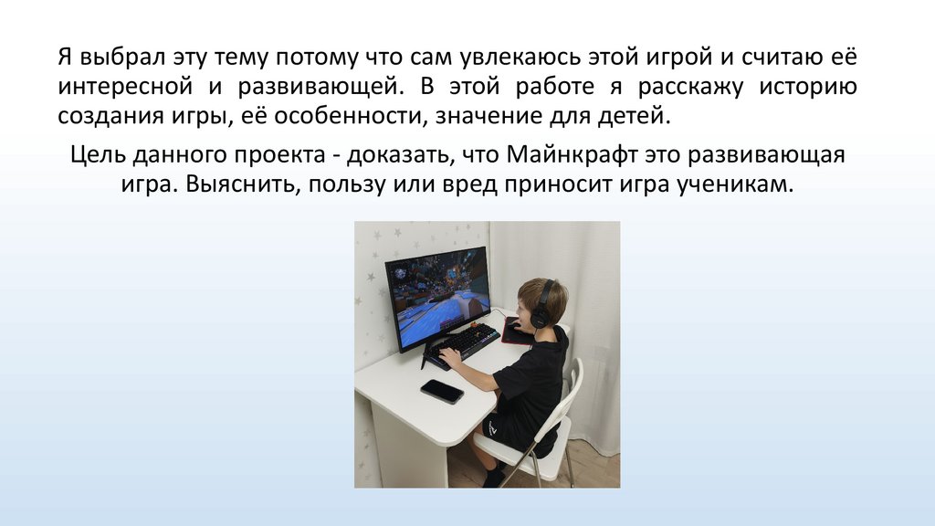 Цель данного проекта - доказать, что Майнкрафт это развивающая