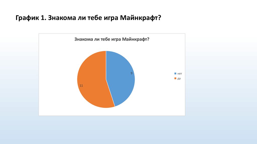 График 1. Знакома ли тебе игра Майнкрафт?Знакома ли тебе игра Майнкрафт?