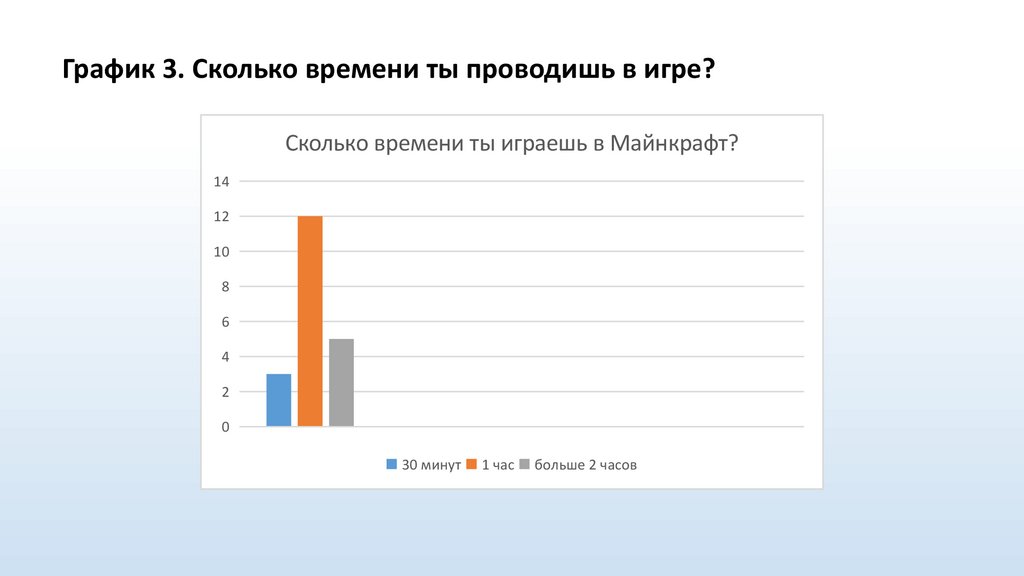 График 3. Сколько времени ты проводишь в игре?Сколько времени ты играешь в Майнкрафт?
