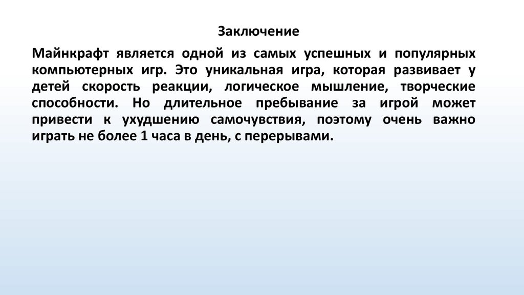 ЗаключениеМайнкрафт является одной из самых успешных и популярных