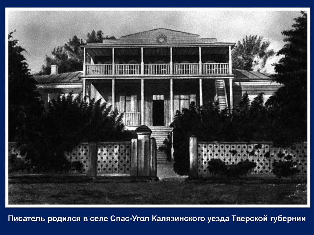 Писатель родился в селе Спас-Угол Калязинского уезда Тверской губернии3.