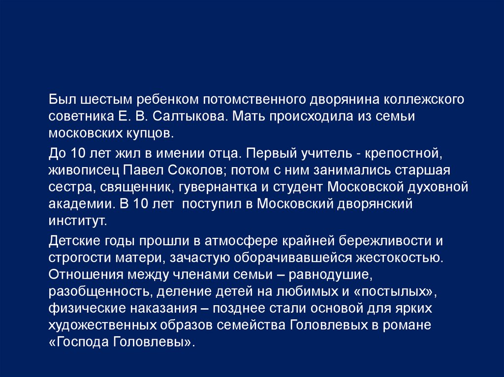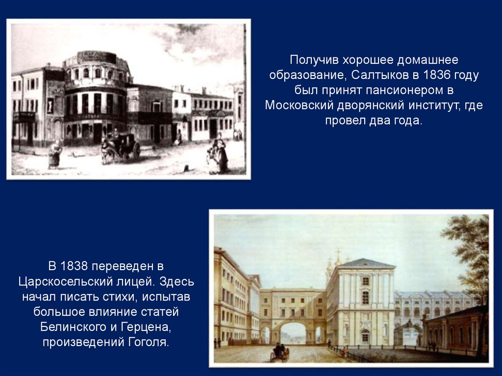 Получив хорошее домашнееобразование, Салтыков в 1836 году