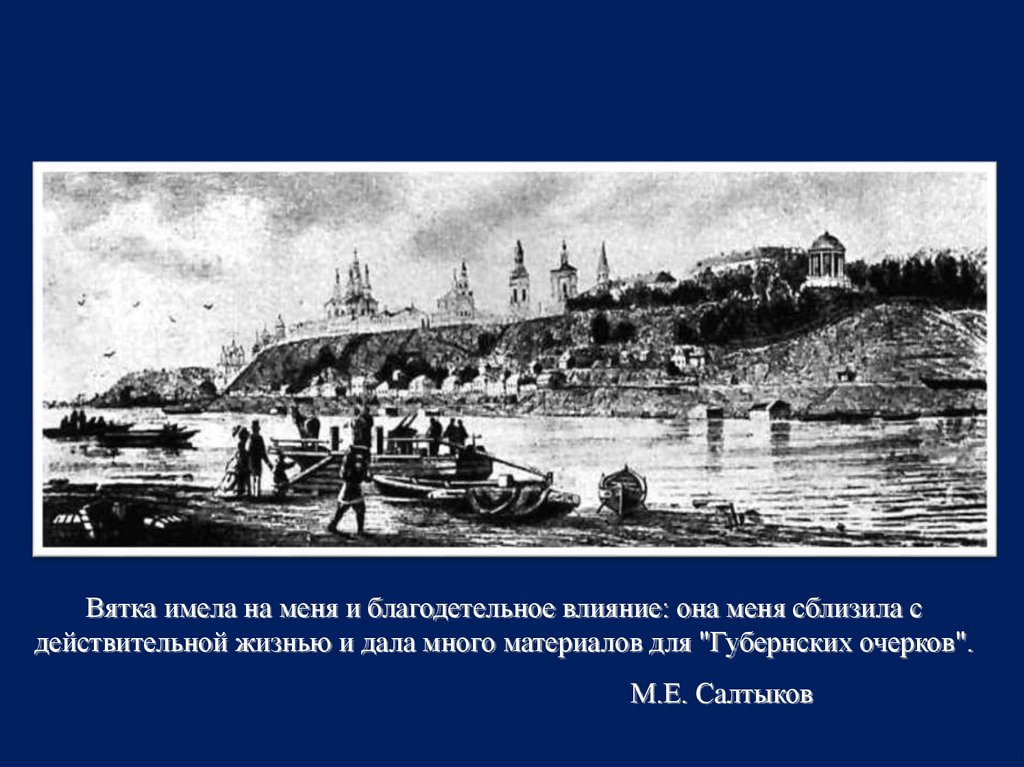 Вятка имела на меня и благодетельное влияние: она меня сблизила сдействительной жизнью и дала много материалов для "Губернских очерков".