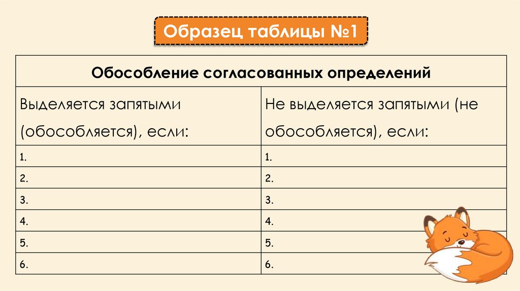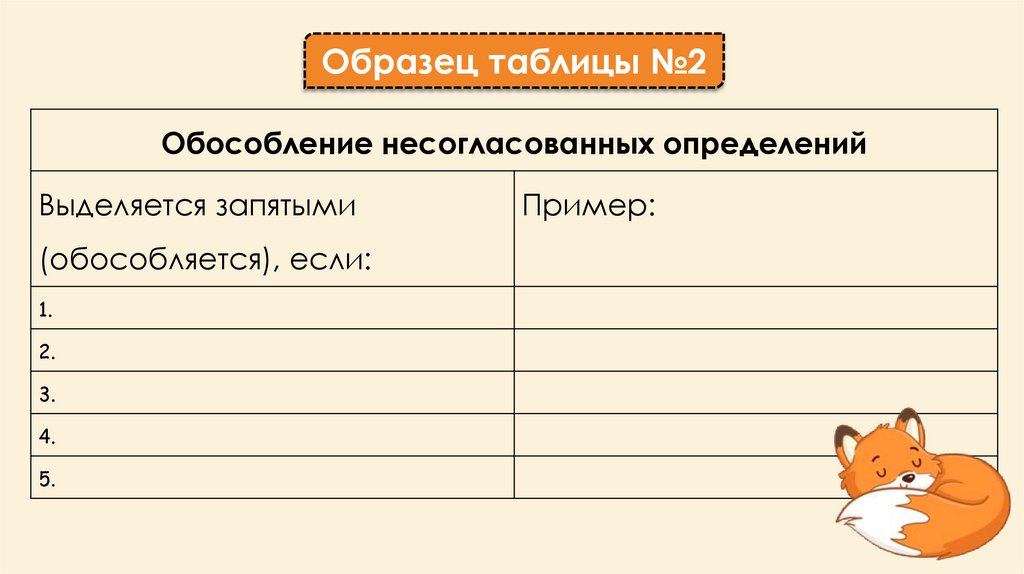 Образец таблицы №2Обособление несогласованных определений