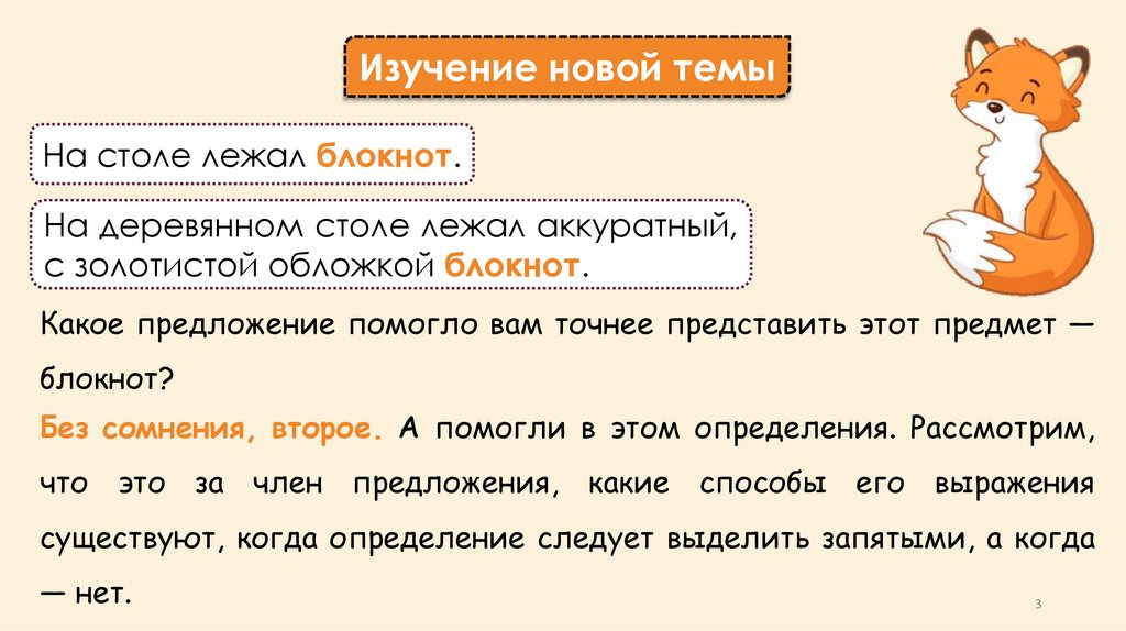 Изучение новой темыНа столе лежал блокнот.