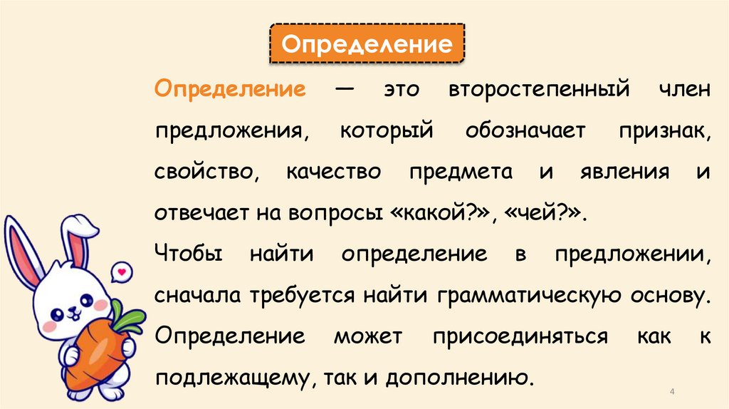 Определение как второстепенный член предложения и