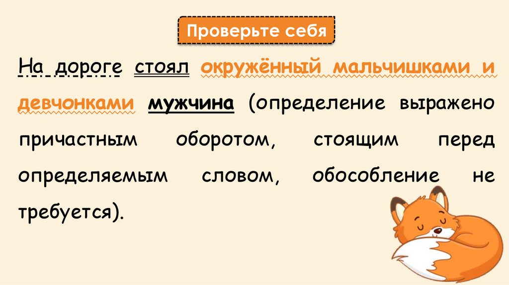 Проверьте себяНа дороге стоял окружённый мальчишками и