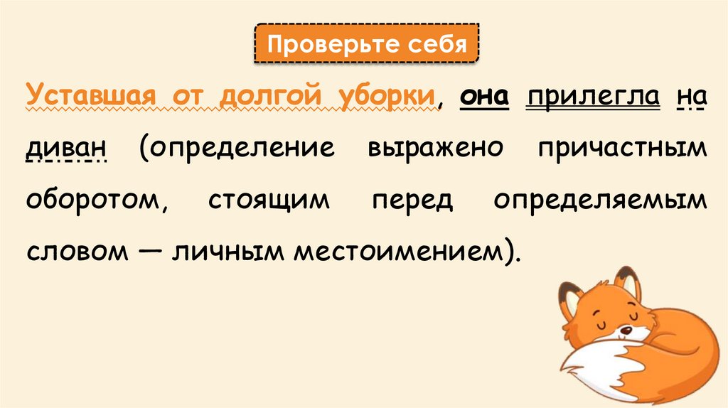 Проверьте себяУставшая от долгой уборки, она прилегла на