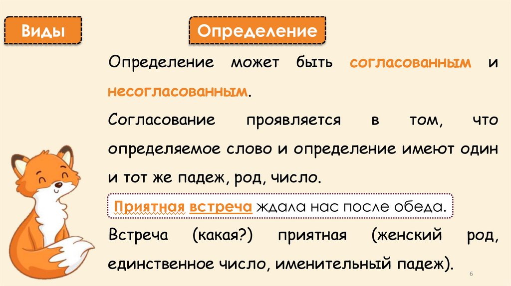 1. Определение как второстепенный член предложения и его виды. Определения согласованные и несогласованные.