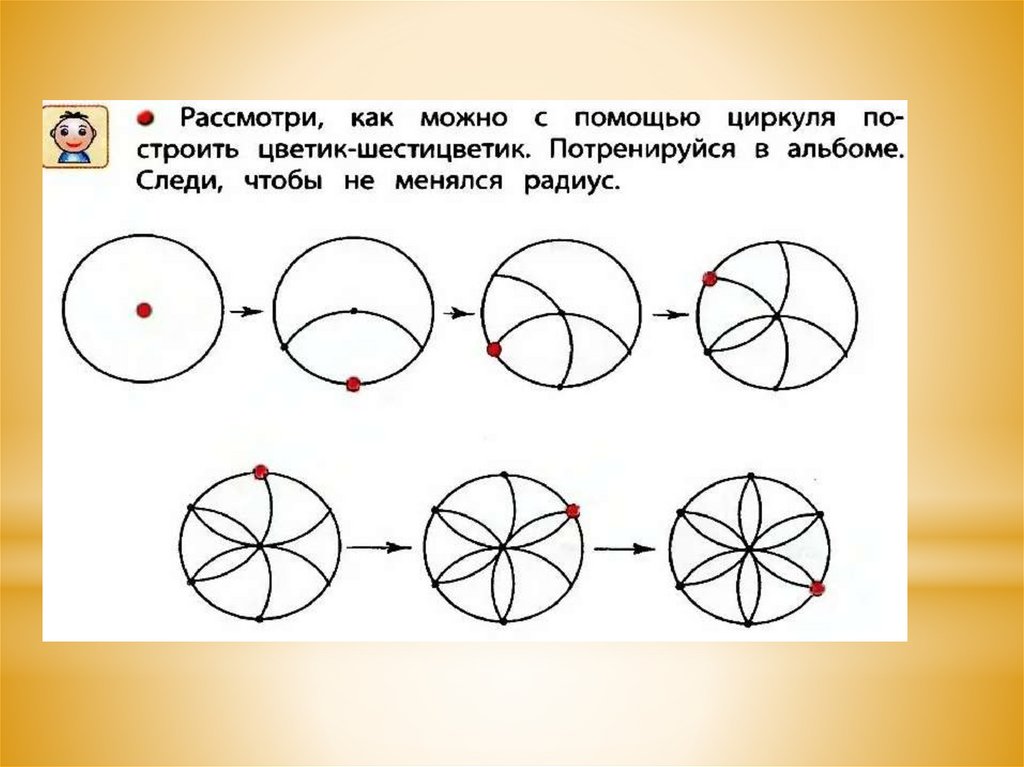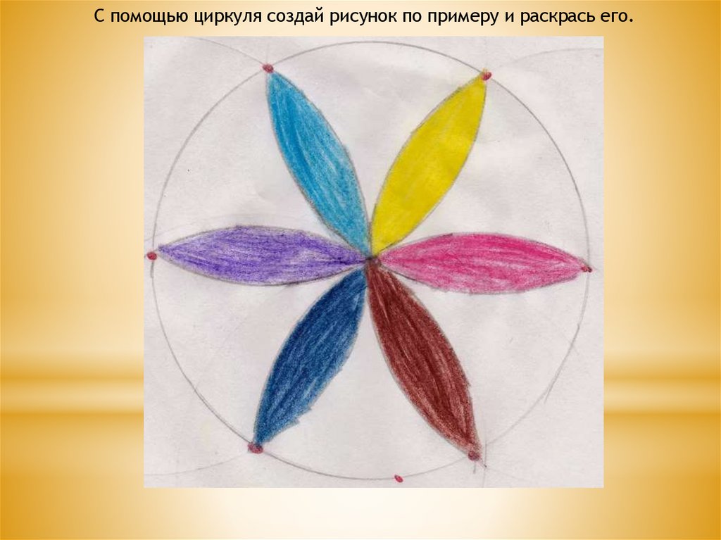 С помощью циркуля создай рисунок по примеру и раскрась его.