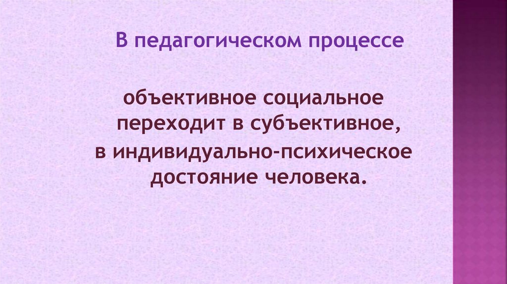 В педагогическом процессеобъективное социальное