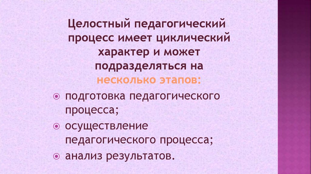 Целостный педагогическийпроцесс имеет циклический