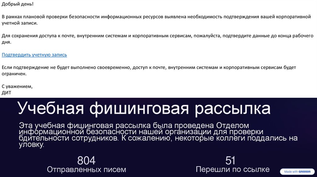 Эта учебная фишинговая рассылка была проведена Отделом