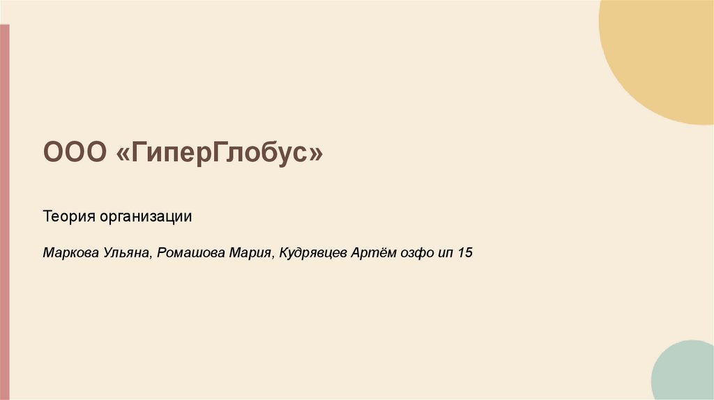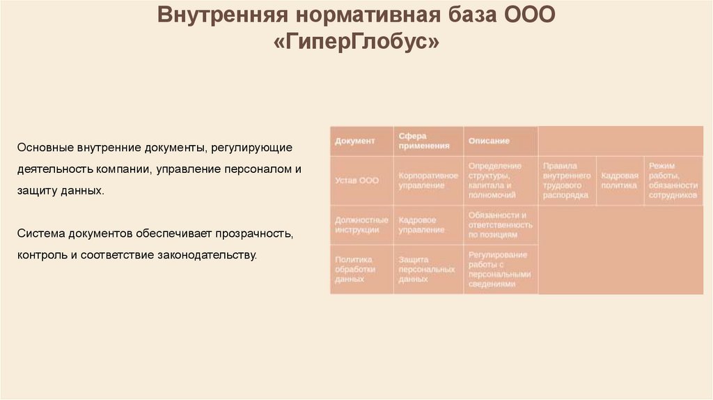 Внутренняя нормативная база ООО«ГиперГлобус»