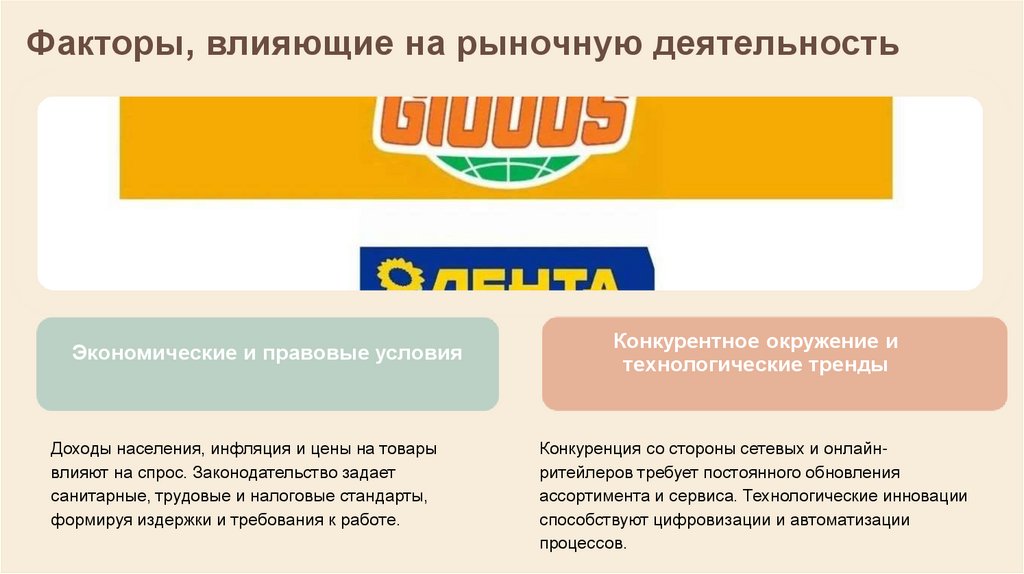 Факторы, влияющие на рыночную деятельностьЭкономические и правовые условия