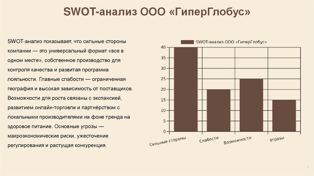 SWOT-анализ ООО «ГиперГлобус»SWOT-анализ показывает, что сильные стороны