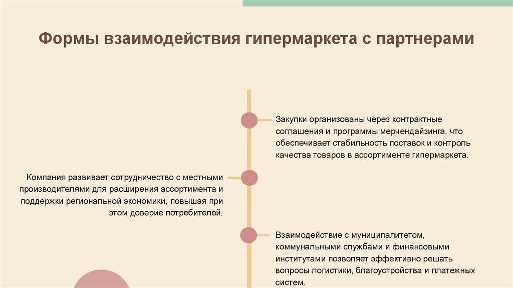 Формы взаимодействия гипермаркета с партнерамиЗакупки организованы через контрактные