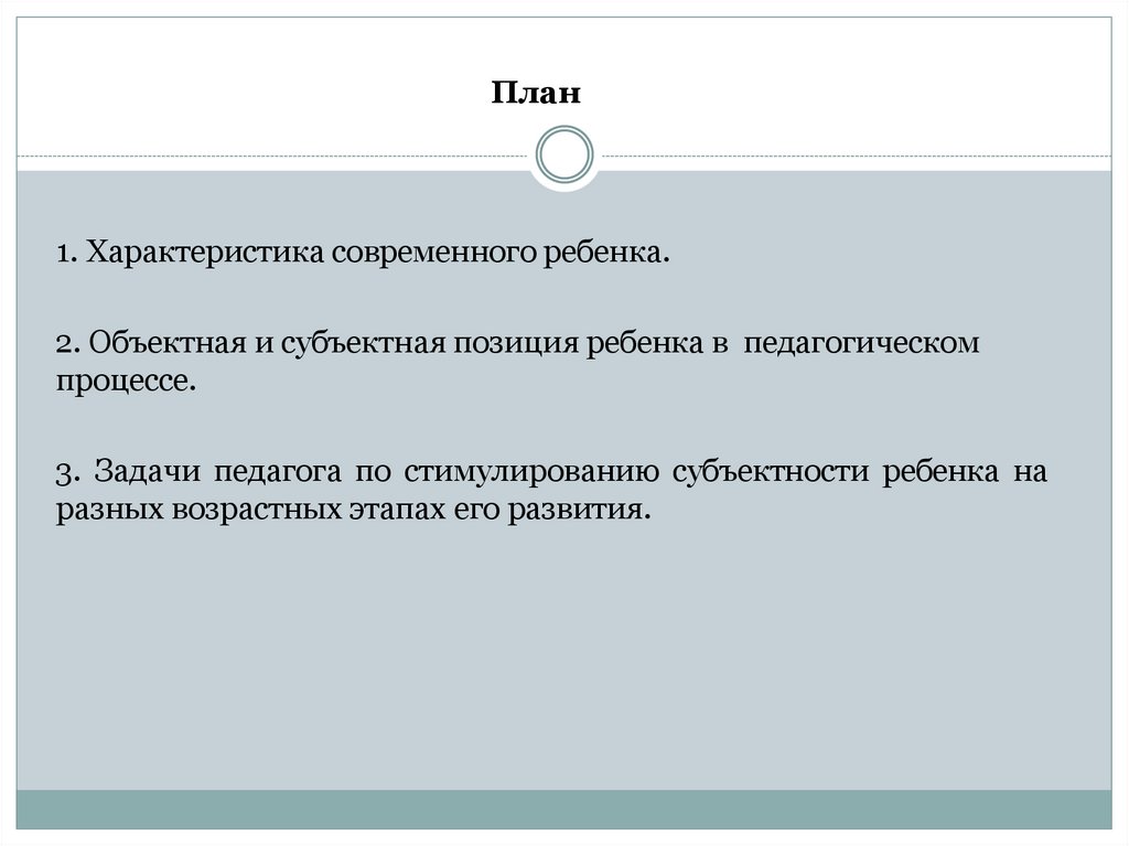 2. Объектная и субъектная позиция ребенка в педагогическом