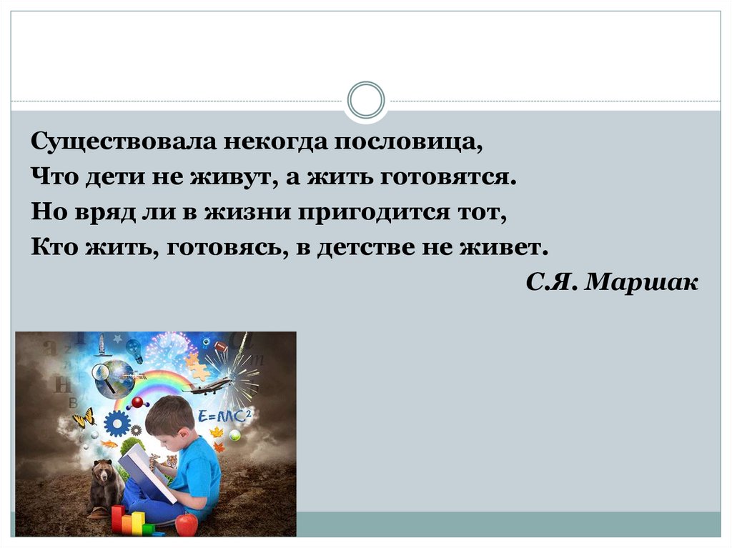 Существовала некогда пословица,Что дети не живут, а жить готовятся.