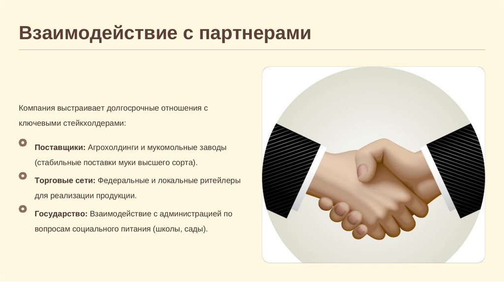 Взаимодействие с партнерамиКомпания выстраивает долгосрочные отношения с