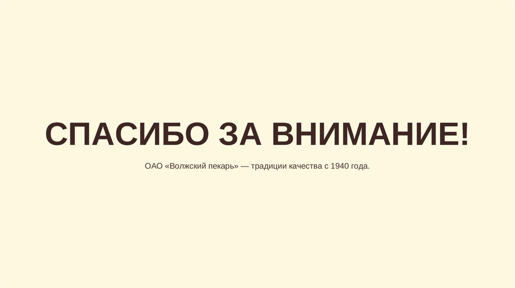 СПАСИБО ЗА ВНИМАНИЕ!ОАО «Волжский пекарь» — традиции качества с 1940 года.