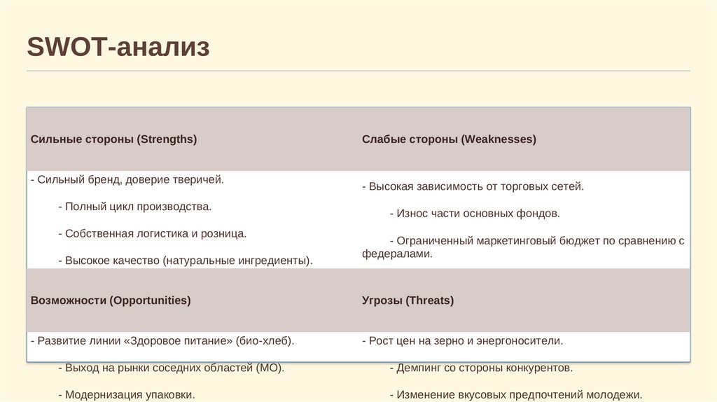 - Развитие линии «Здоровое питание» (био-хлеб).