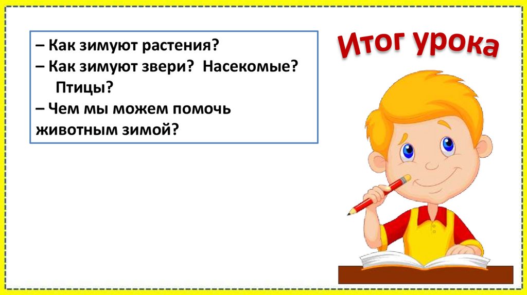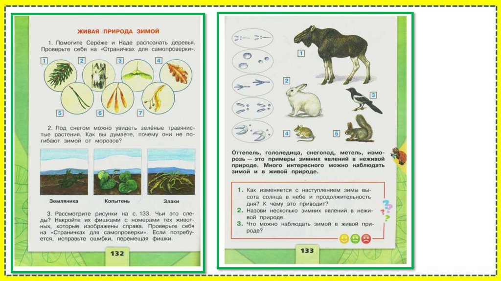 – Как зимуют растения?– Как зимуют звери? Насекомые?