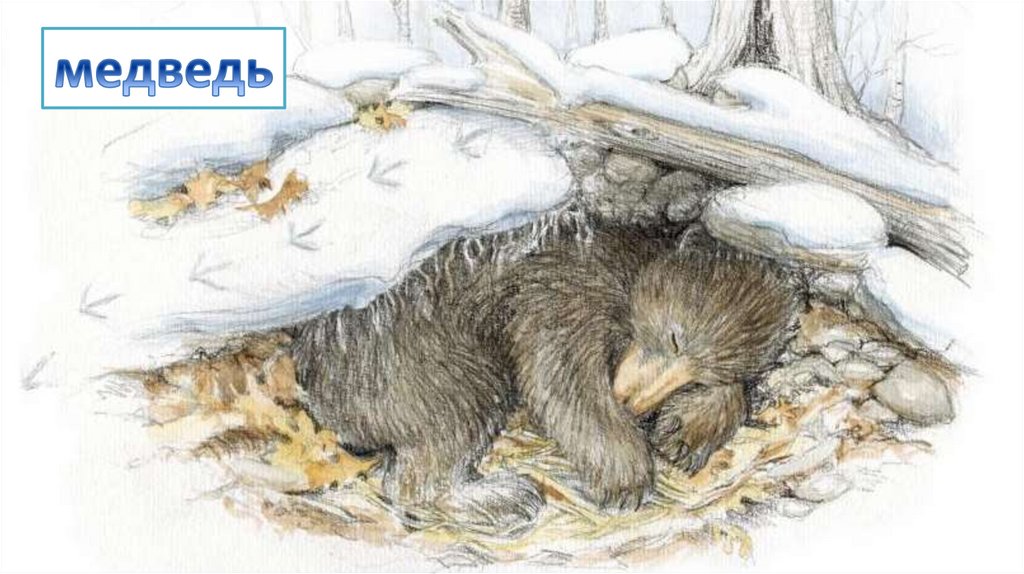 Не просыпается только медведь — ему хватает жира на всю зиму. Спит медведь очень чутко.Можно сказать, что он не спит, а дремлет, прислушиваясь ко всему, что происходит вокруг.