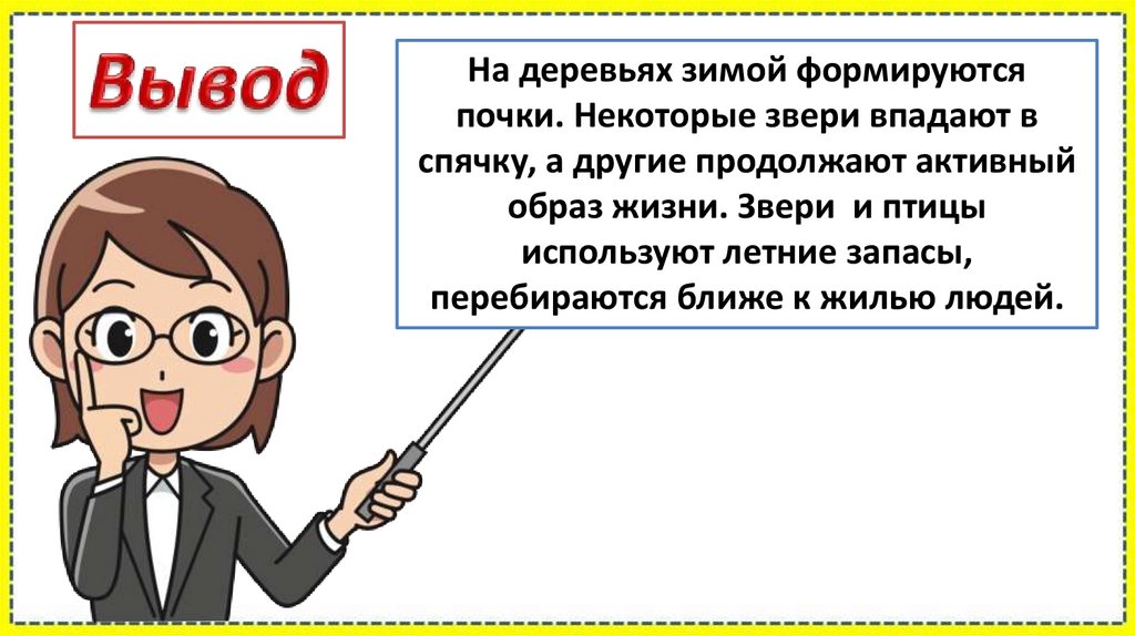 На деревьях зимой формируютсяпочки. Некоторые звери впадают в