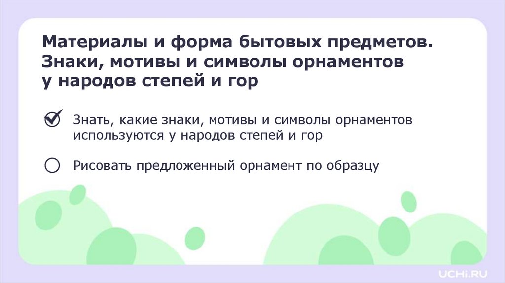 Изо, 4 класс, Материалы и форма бытовых предметов. Знаки, мотивы и символы орнаментов у народов степей и гор