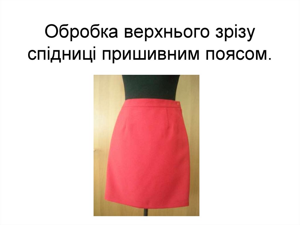 Обробка верхнього зрізу спідниці пришивним поясом.