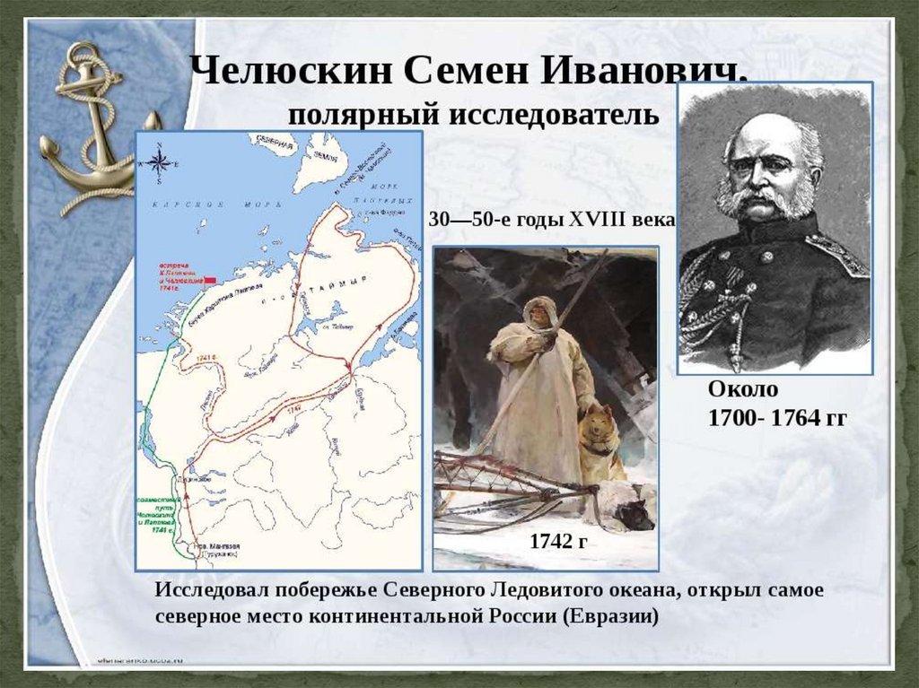 8. Семен Иванович Челюскин - русский полярный мореплаватель.