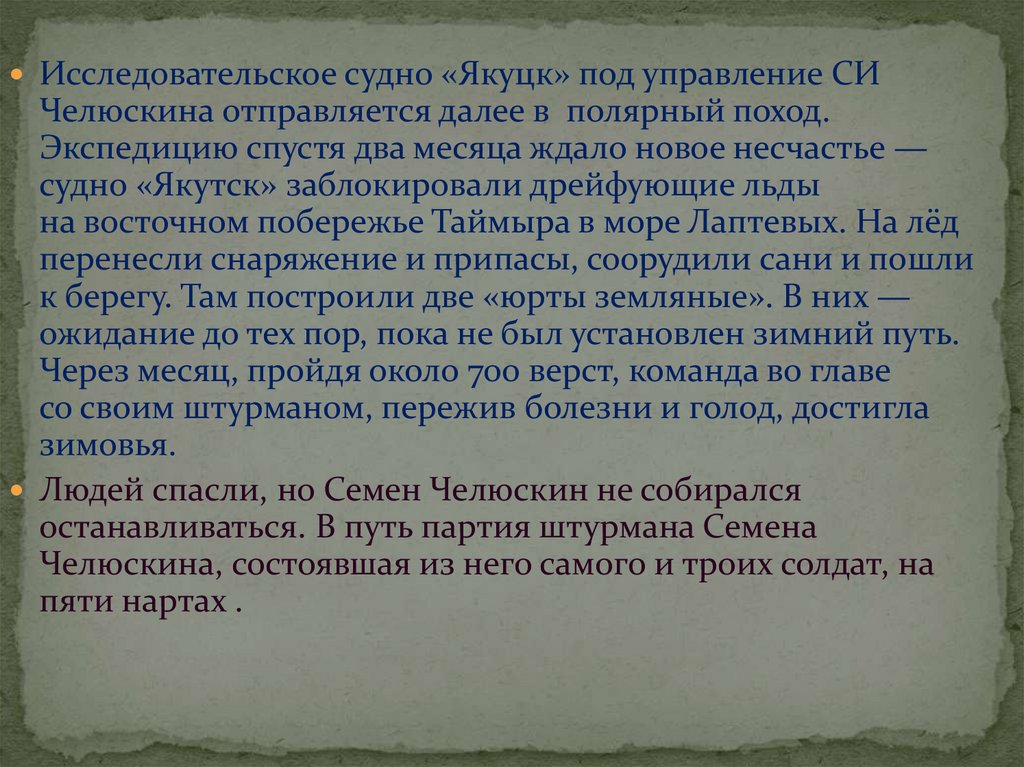 14. Прончищев стал начальником отряда, который должен был найти морской путь из Лены в Енисей, для этого он должен был обогнуть