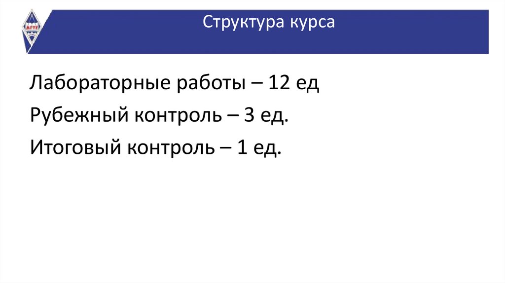 Структура курсаЛабораторные работы – 12 ед