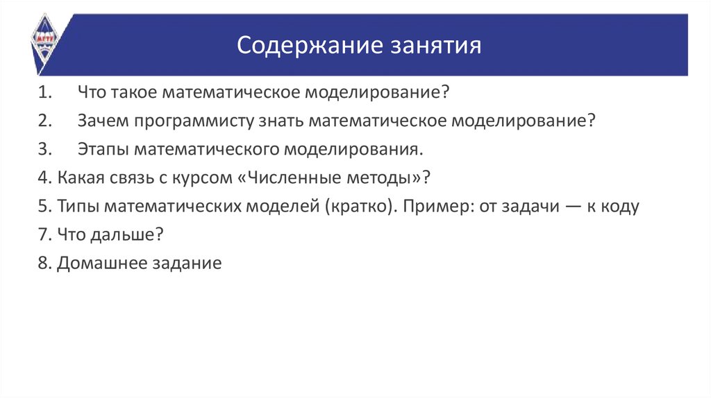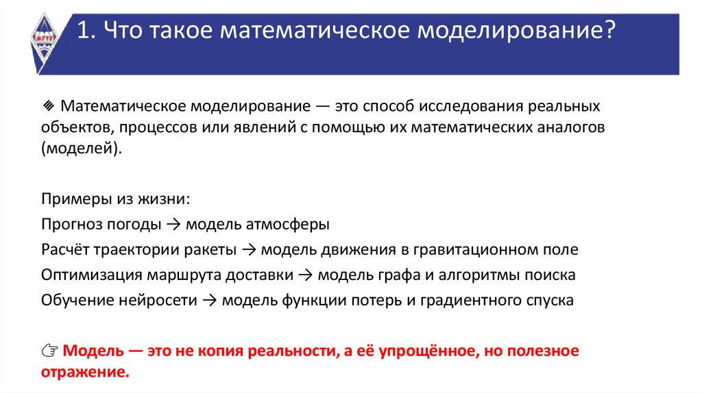 Содержание занятия1. Что такое математическое моделирование?
