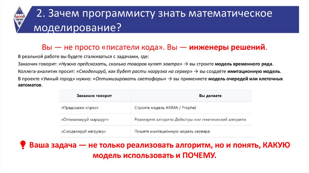 2. Зачем программисту знать математическое моделирование?