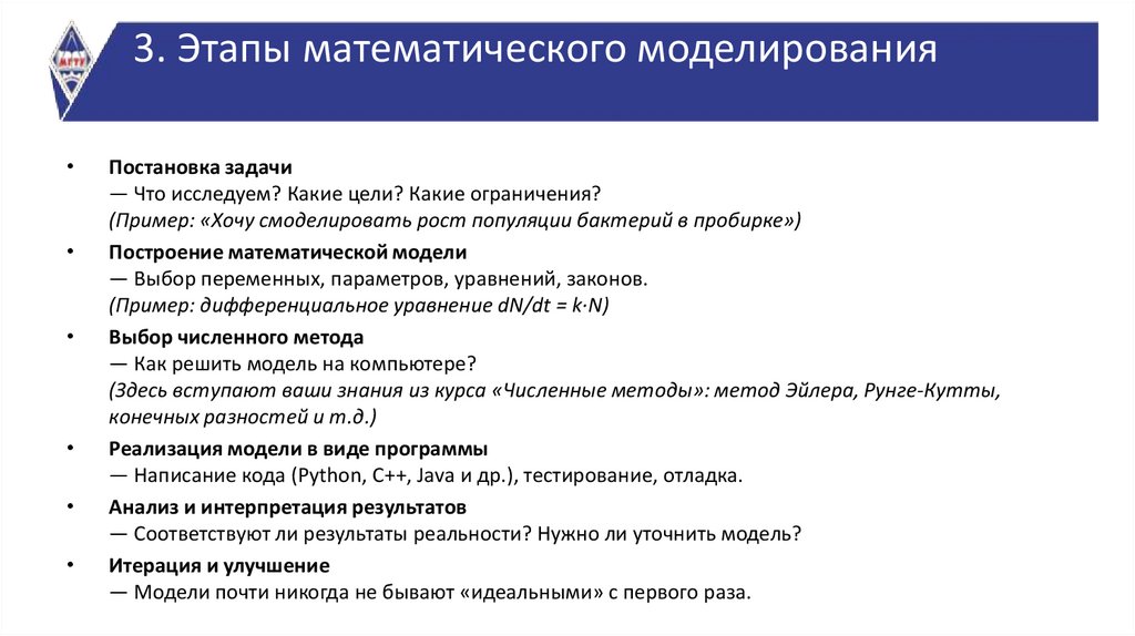 3. Этапы математического моделирования.