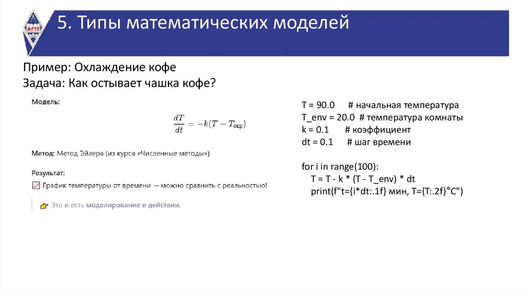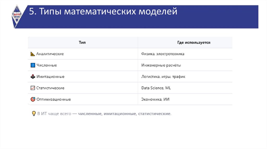 5. Типы математических моделей (кратко). Пример: от задачи — к коду