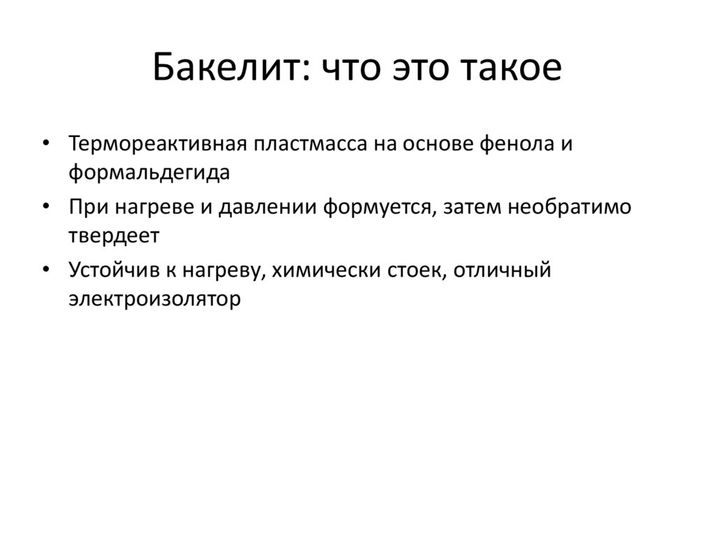 Бакелит: что это такое• Термореактивная пластмасса на основе фенола и