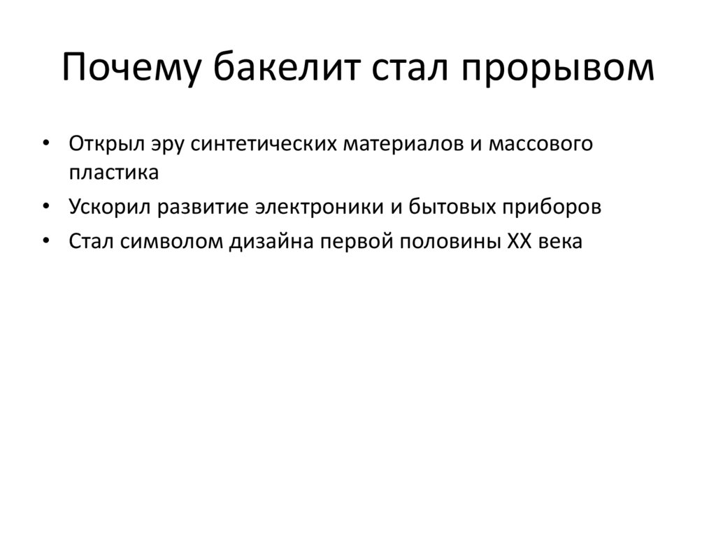 Почему бакелит стал прорывом• Открыл эру синтетических материалов и массового