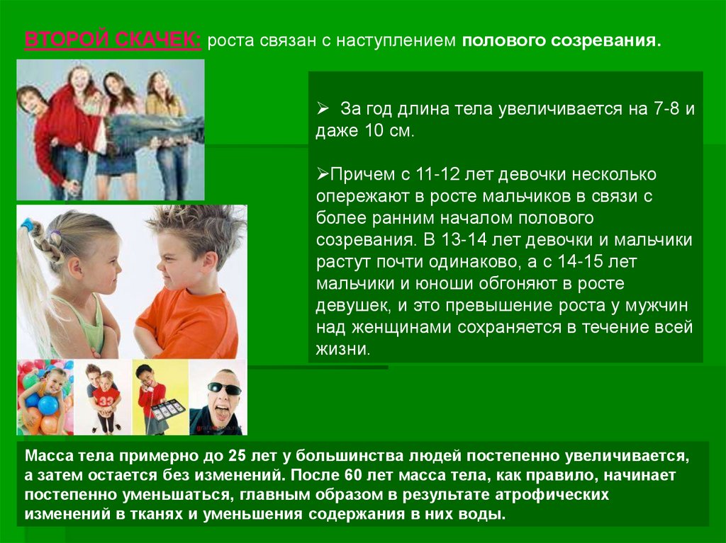 У 15-летних длина тела увеличилась на 6-10 см, масса – на