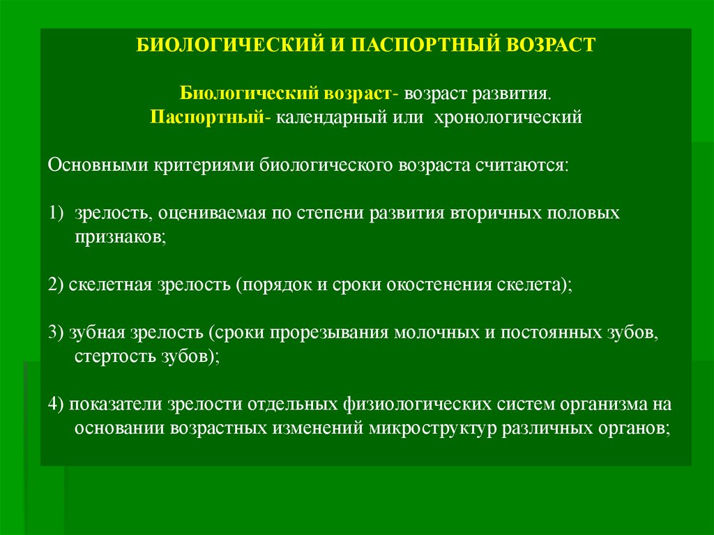 4) До некоторой степени в качестве критериев биологического возрастамогут использоваться возрастные изменения физиологических и