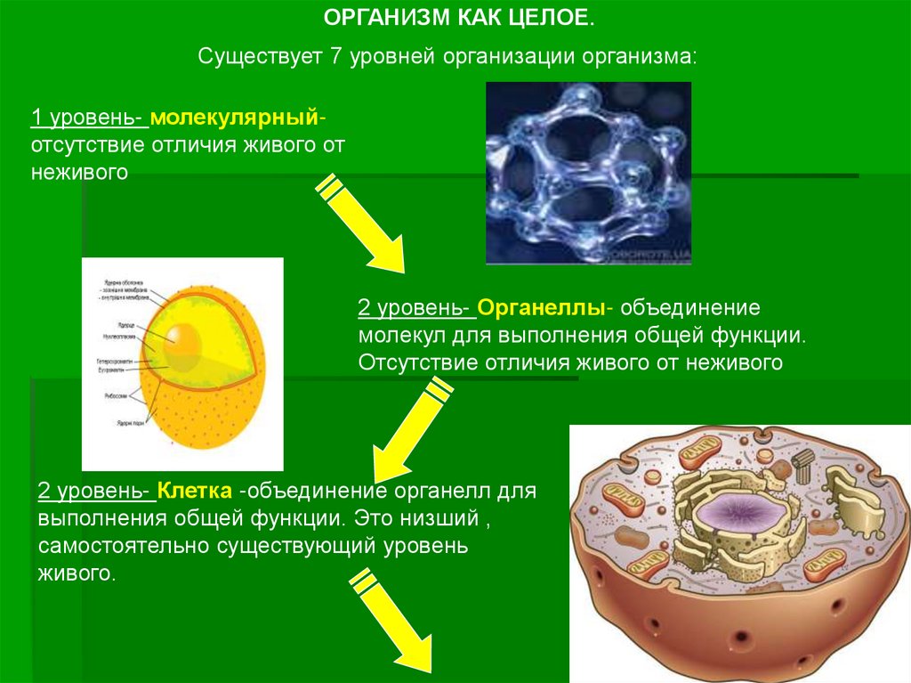 ОРГАНИЗМ КАК ЦЕЛОЕ.Существует 7 уровней организации организма: