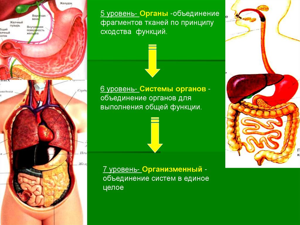 7 уровень- Организменный объединение систем в единое
