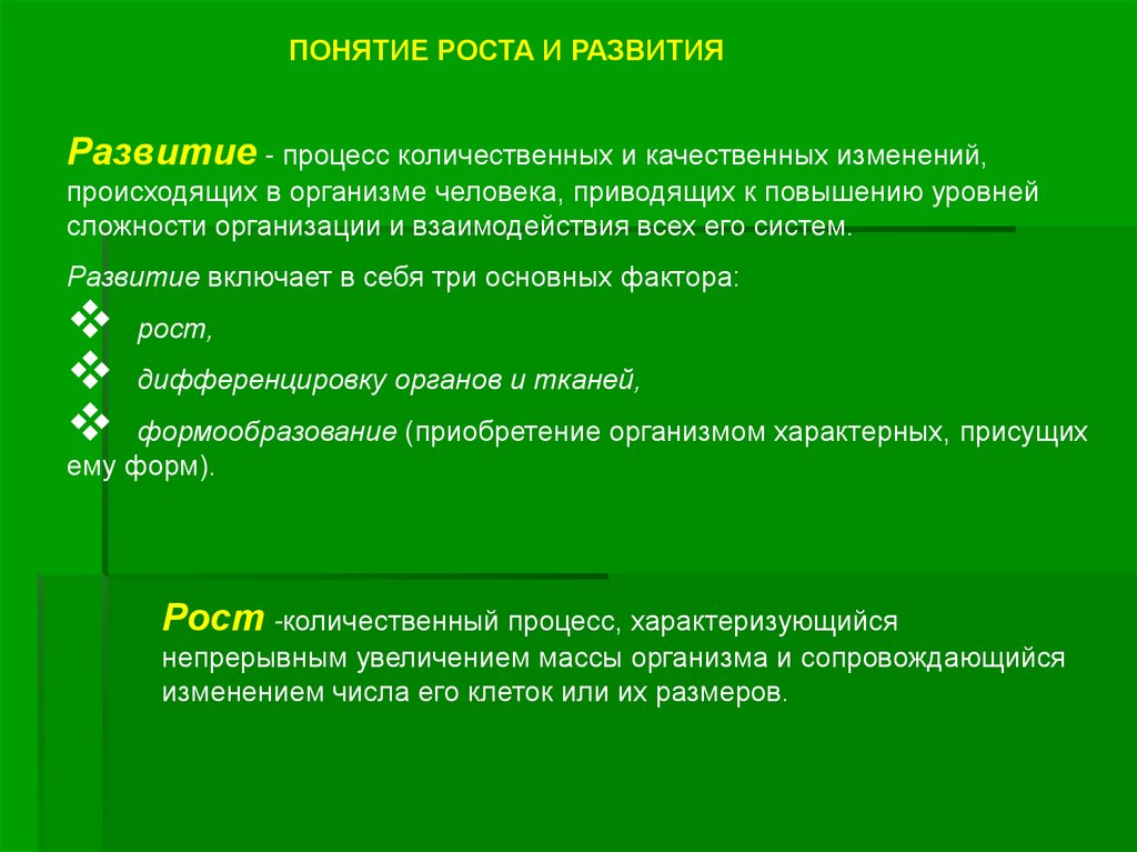 ПОНЯТИЕ РОСТА И РАЗВИТИЯРазвитие - процесс количественных и качественных изменений,