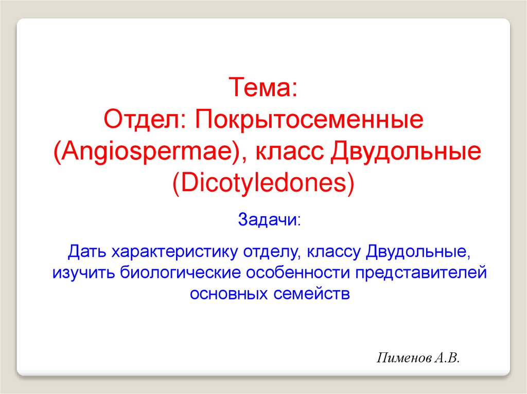 Тема:Отдел: Покрытосеменные