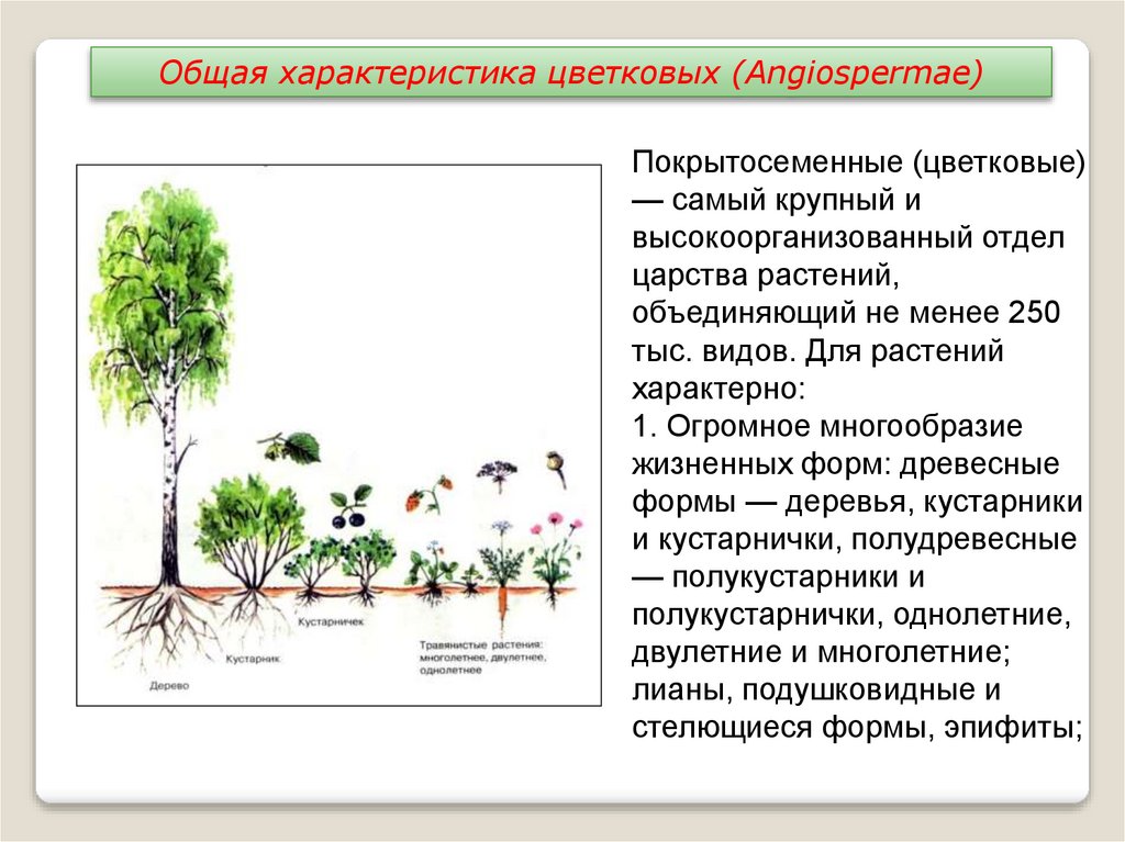Общая характеристика цветковых (Angiospermae)Покрытосеменные (цветковые)
